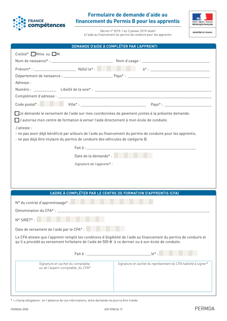 L’apprenti(e) souhaitant demander l’aide au financement du permis de conduire B doit se munir des éléments suivants :